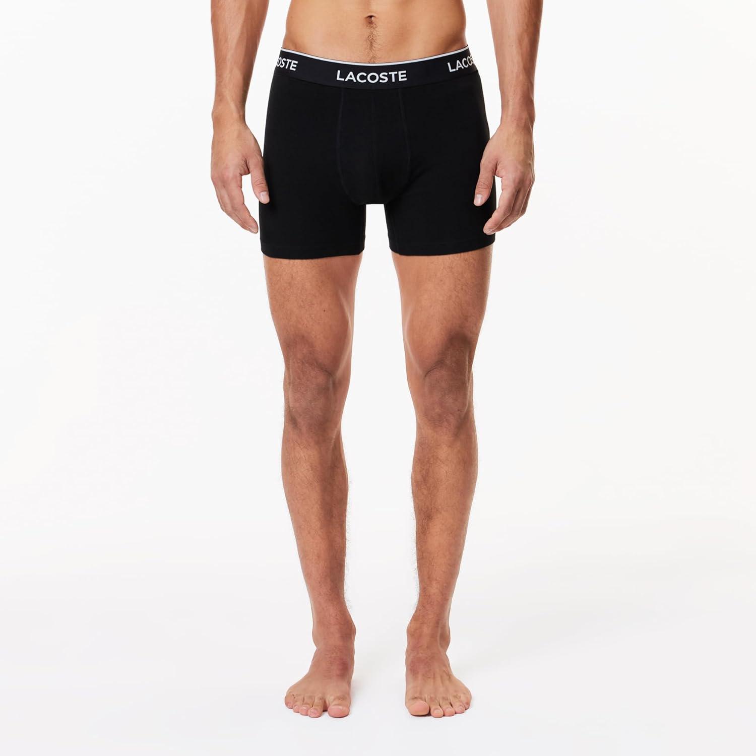 Lacoste Men’s 3 Pack Boxer Briefs(Black With Black Waistbands)