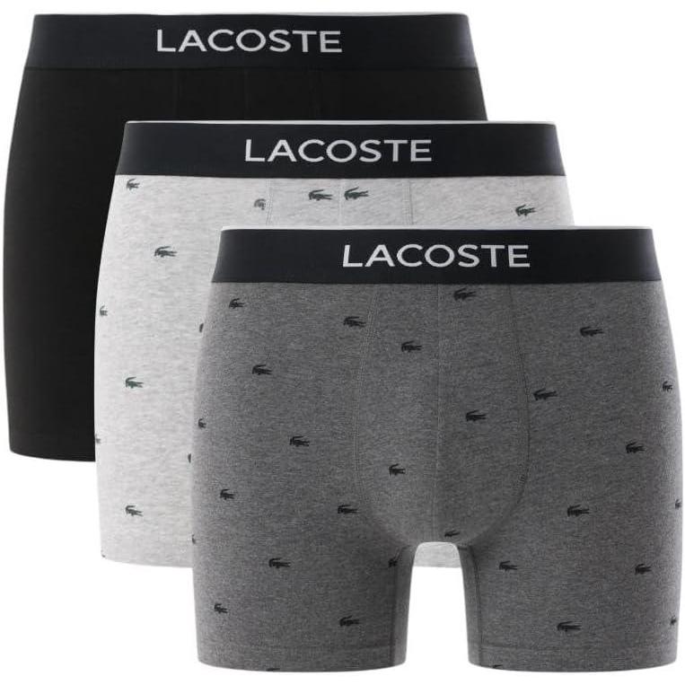 Lacoste mens Casual All Over Croc 3 Pack Cotton Stretch Boxer Briefs(Black/Midnight Smoke/Dove Grey)