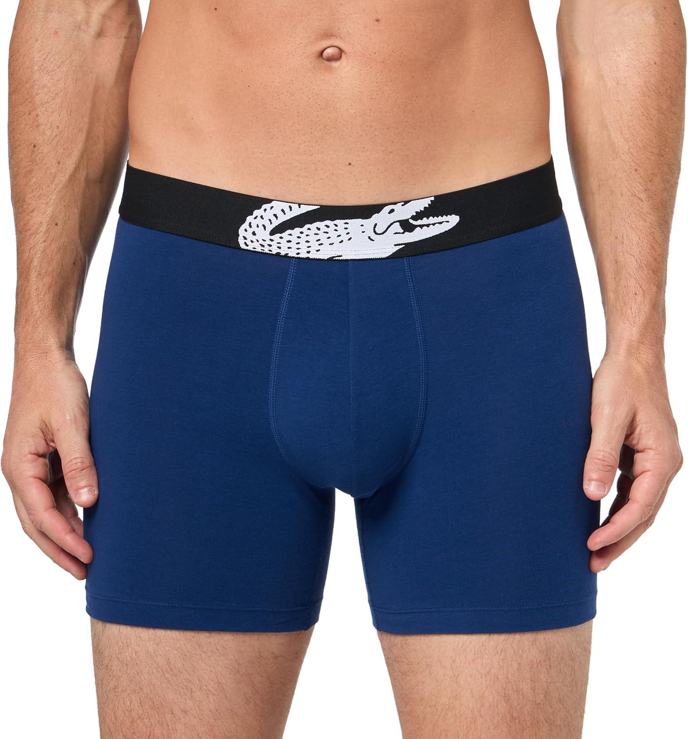 Lacoste mens Cotton Stretch Big Croc Print Boxer Briefs, 3-pack (Amazon Exclusives)(Methylene/Silver Chine/Red)