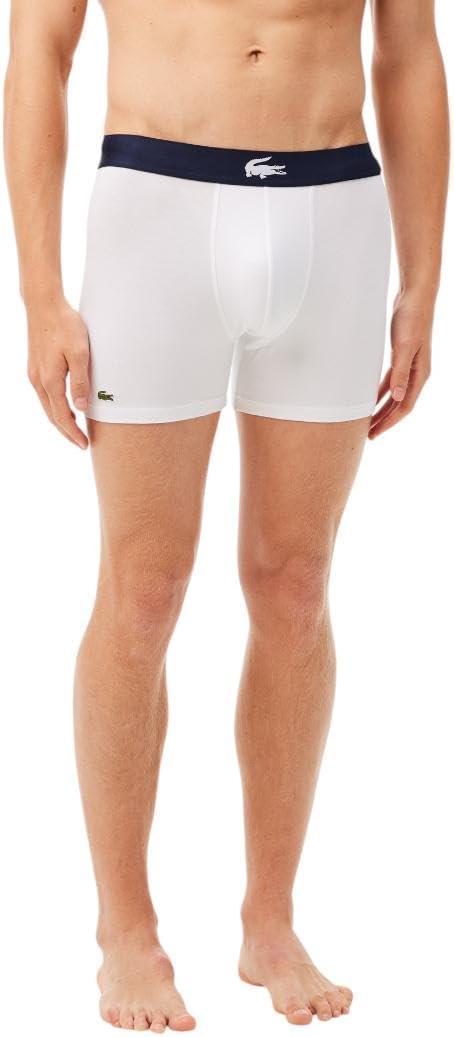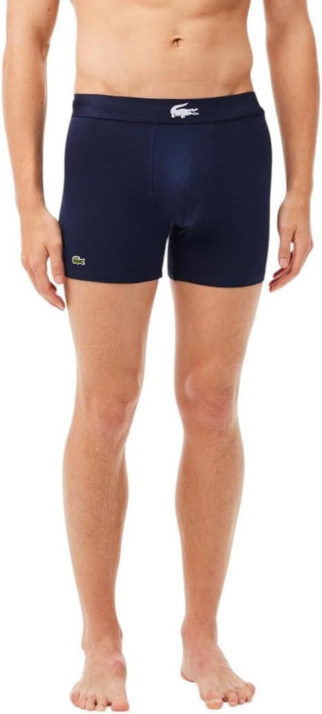 Lacoste mens Cotton Stretch Big Croc Print Boxer Briefs, 3-pack(Navy Blue/Grey/Red)