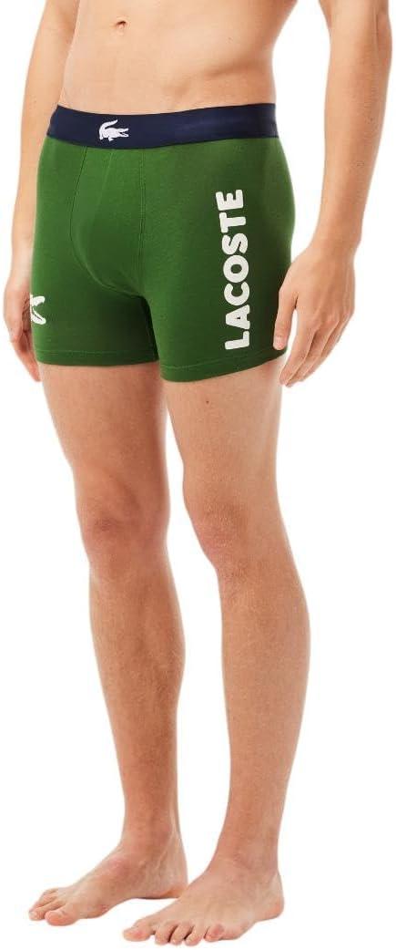 Lacoste mens Cotton Stretch Big Croc Print Boxer Briefs, 3-pack(Blue/Dark Green/Navy Blue)