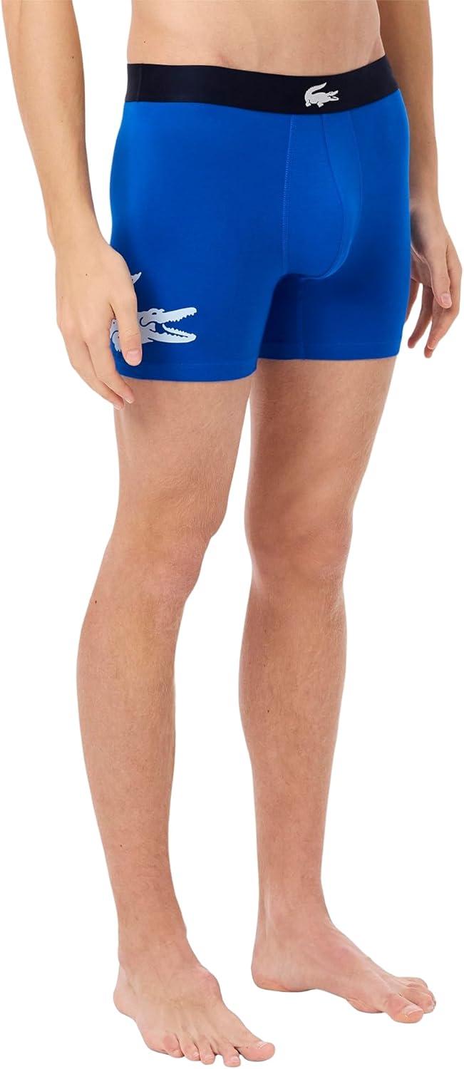 Lacoste mens Cotton Stretch Big Croc Print Boxer Briefs, 3-pack(Gypsy Blue/Light Blue/Navy Blue)