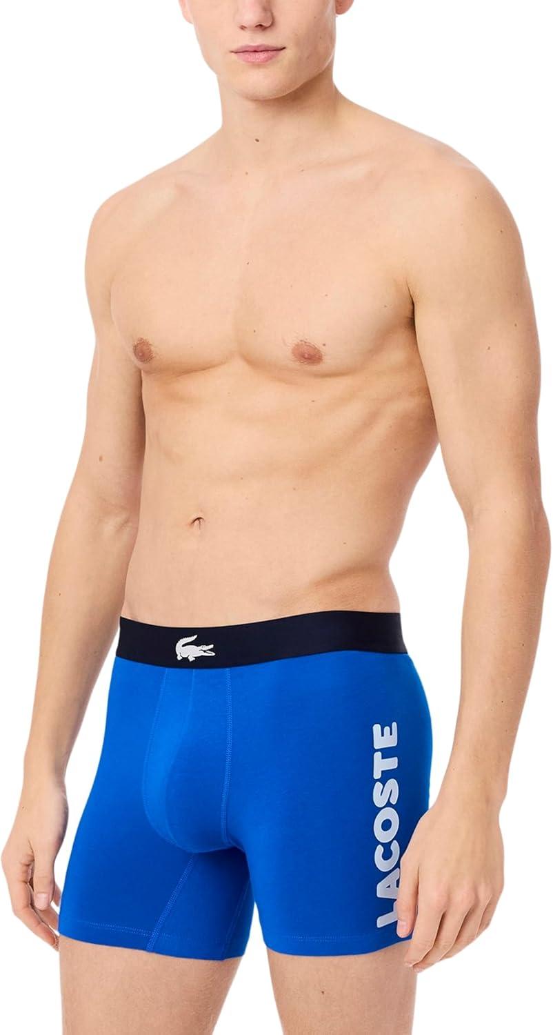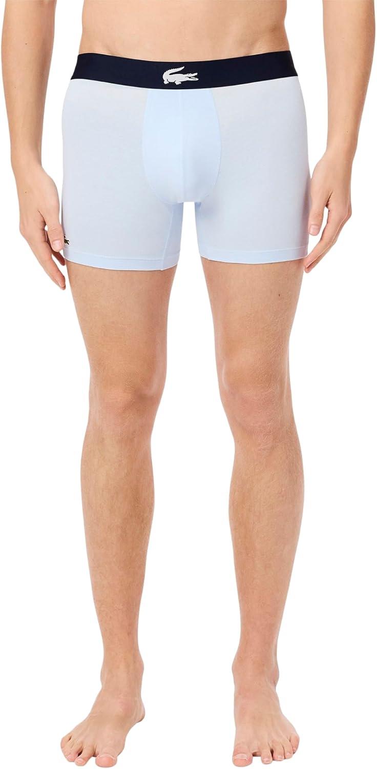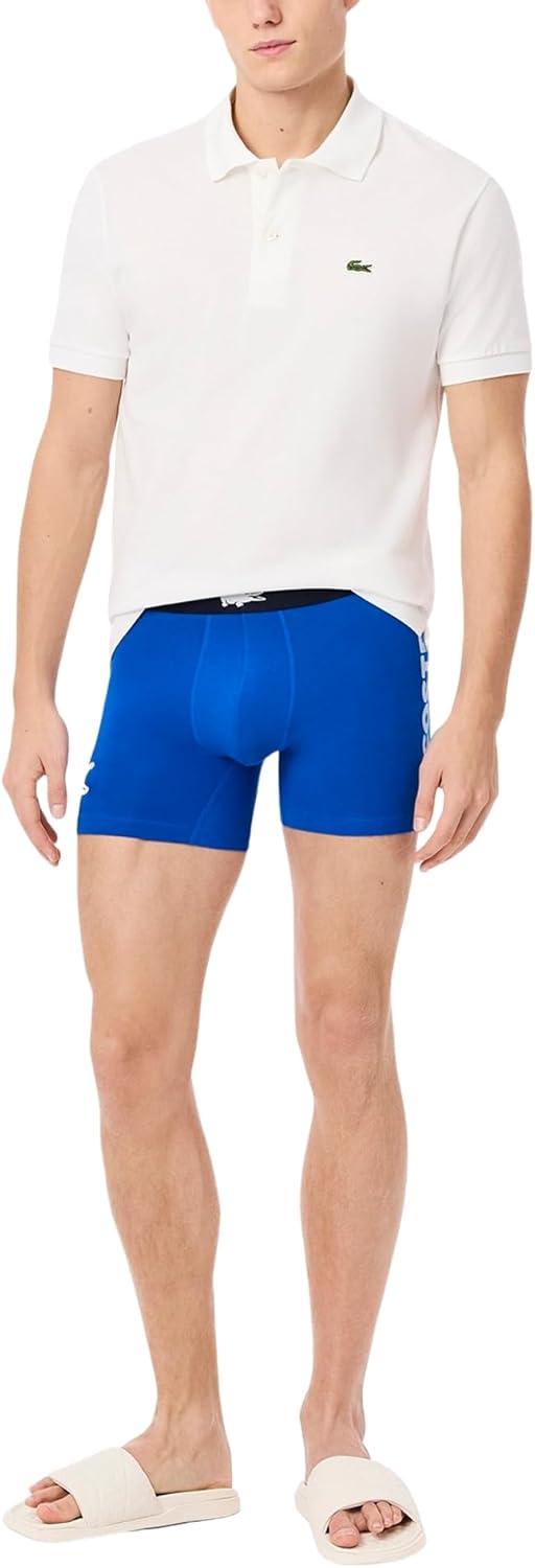 Lacoste mens Cotton Stretch Big Croc Print Boxer Briefs, 3-pack(Navy Blue/White/Dove Grey/Deep Ocean)