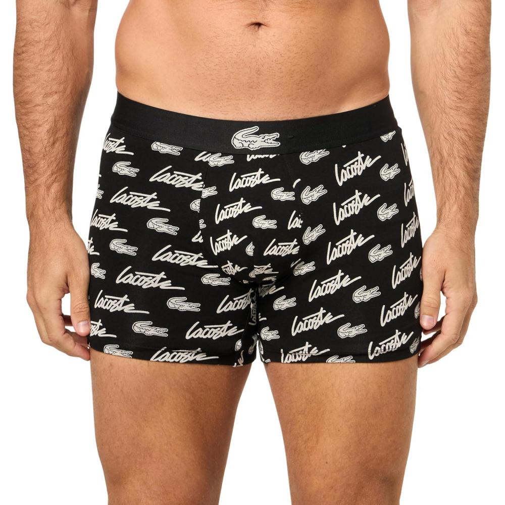 Lacoste mens Cotton Stretch Print Animation Boxer Briefs(Black/White)