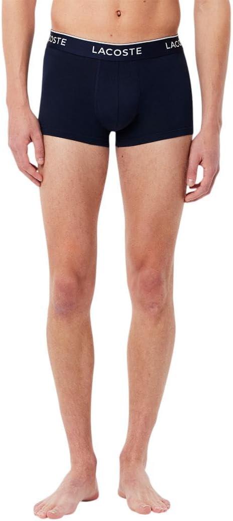 Lacoste mens Cotton Stretch Tricolor Waistband Trunks, 3-pack(Navy Blue/Grey/Red)
