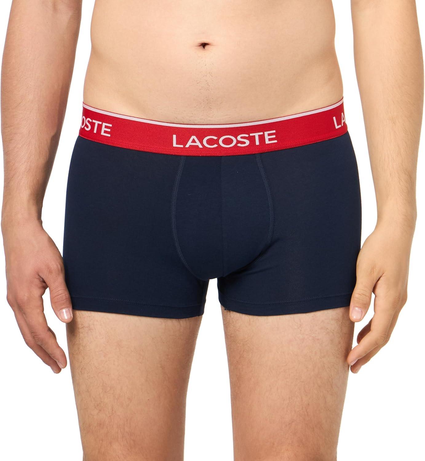 Lacoste Men’s Cotton Stretch Tricolor Waistband Trunks, 3-Pack(Navy Blue/Orange/Red)