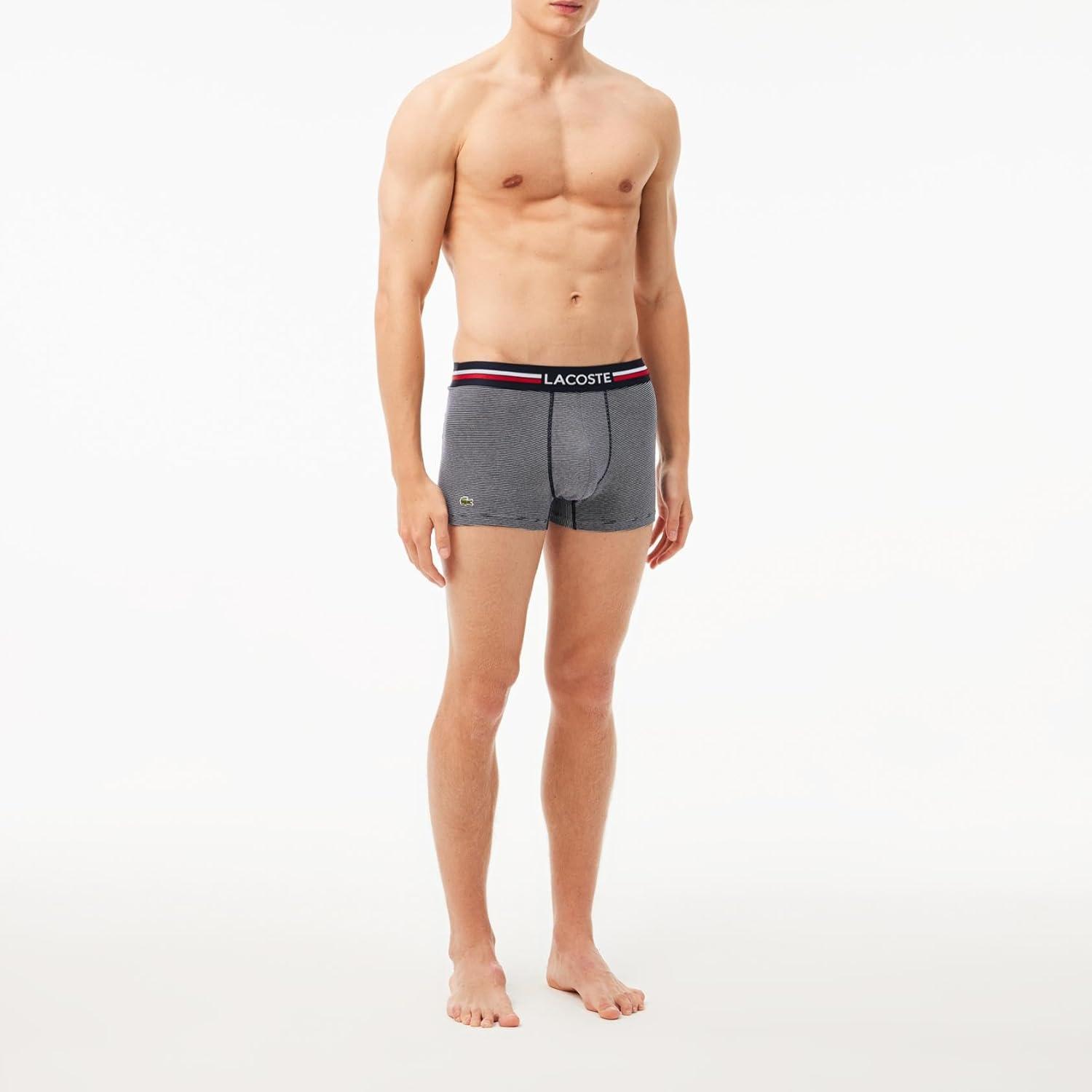 Lacoste mens Cotton Stretch Tricolor Waistband Trunks, 3-pack(Navy Blue/White/Navy Striped)