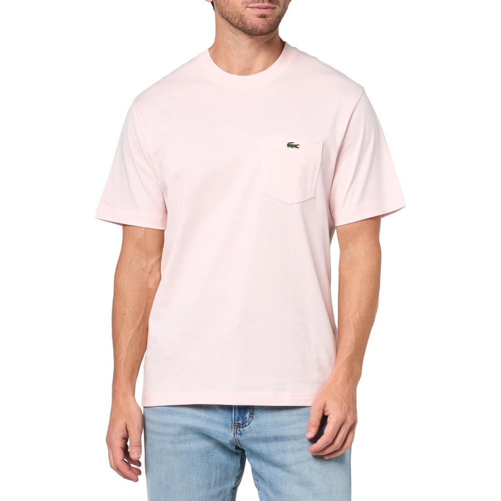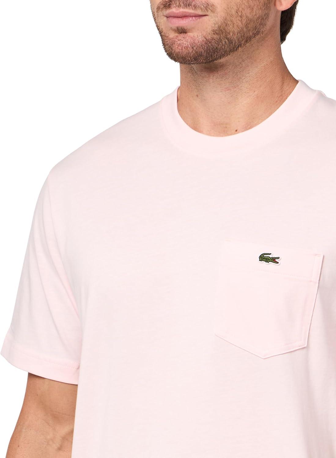Lacoste Mens Cotton T-Shirt with Breast Pocket(Flamingo)