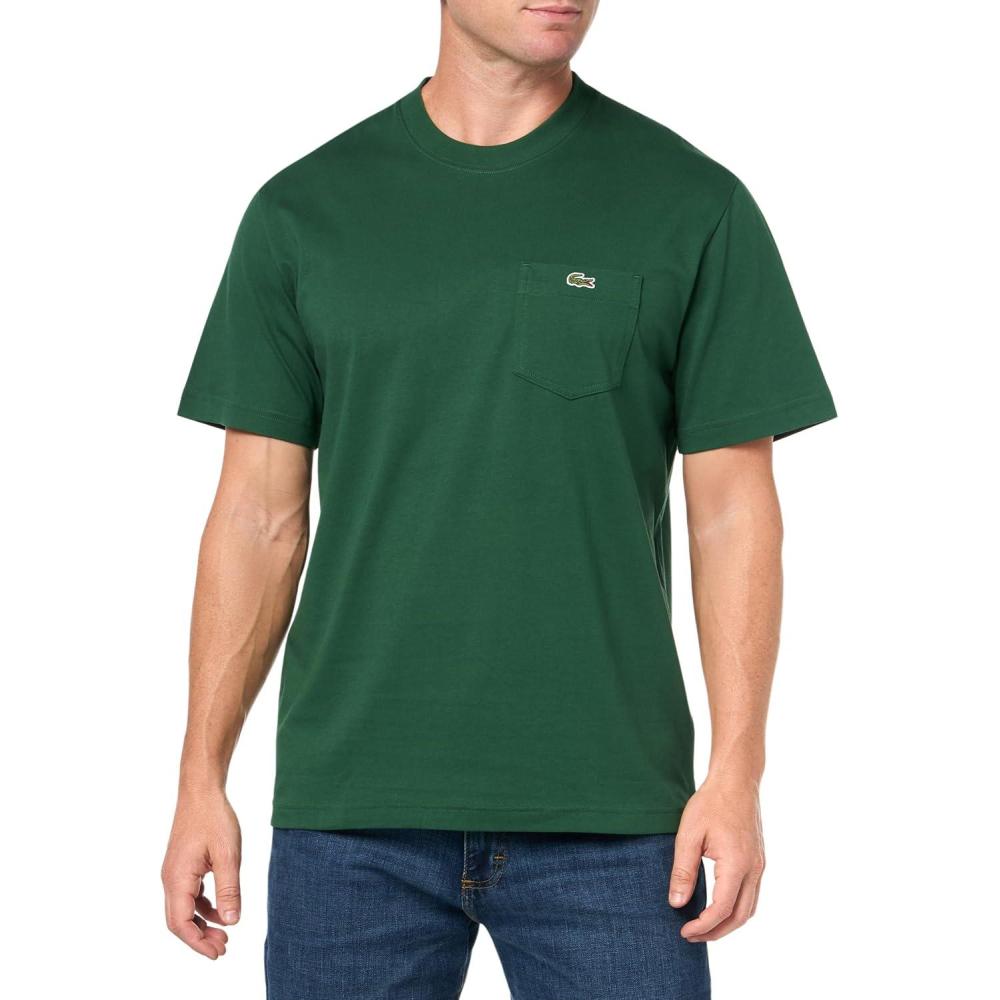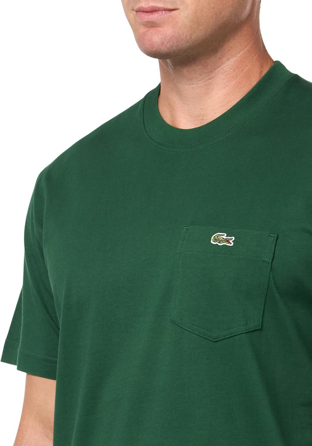 Lacoste Mens Cotton T-Shirt with Breast Pocket(Green Pocket)