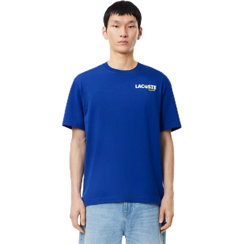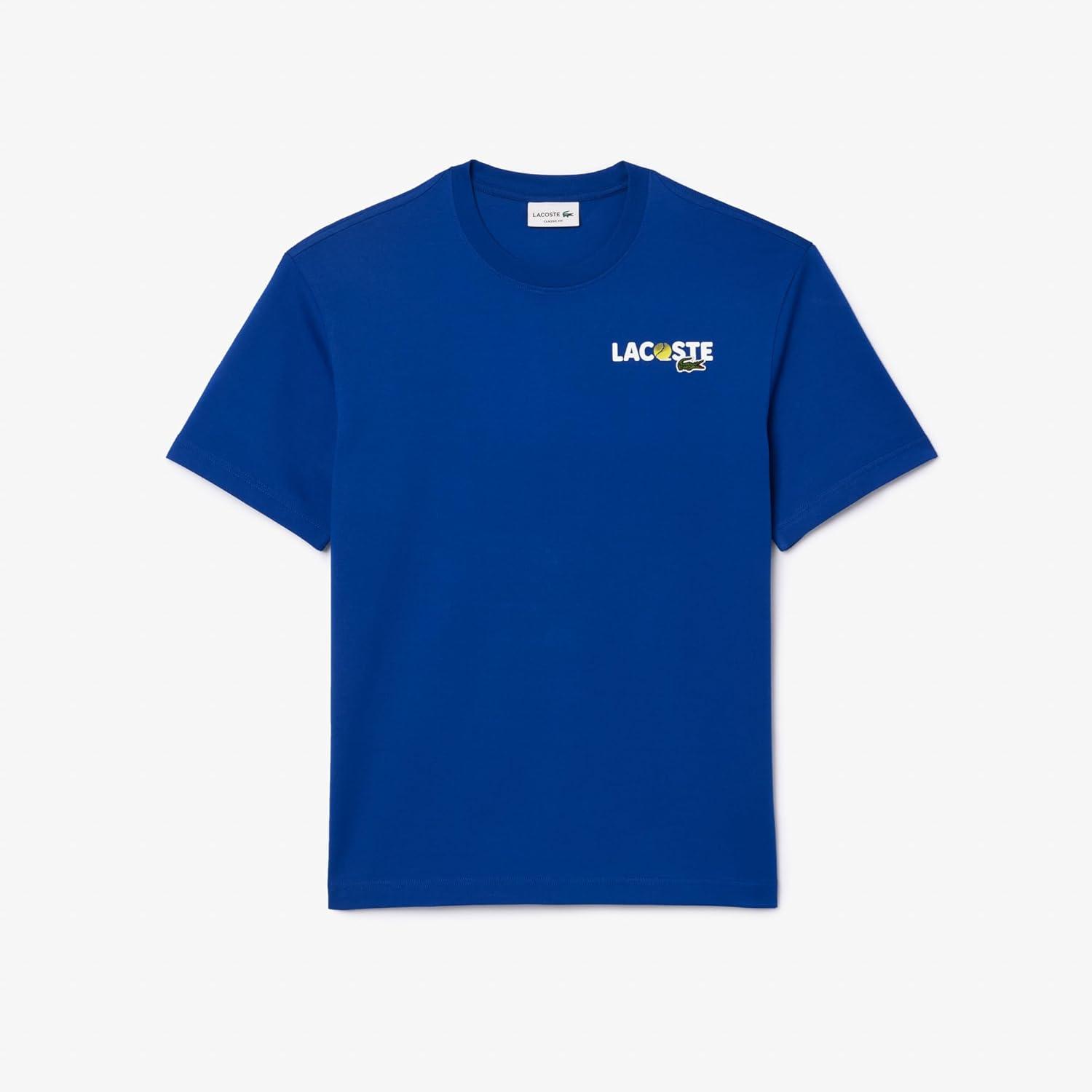 Lacoste Mens Crew Neck Short Sleeve Classic Fit Graphic T-Shirt(Captain Blue Animated)