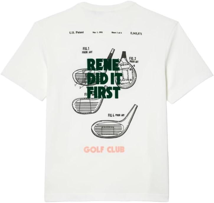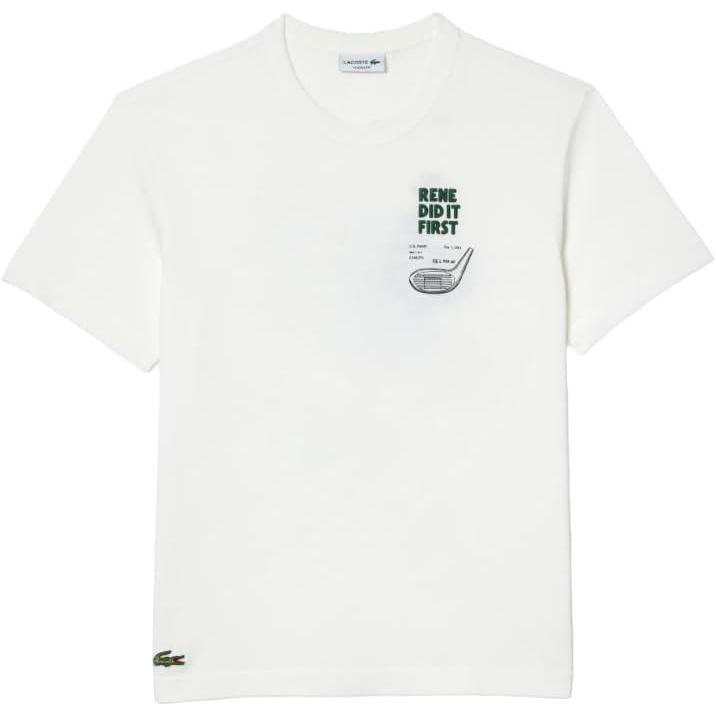 Lacoste Mens Crew Neck Short Sleeve Classic Fit Graphic T-Shirt(Flour/Golf)