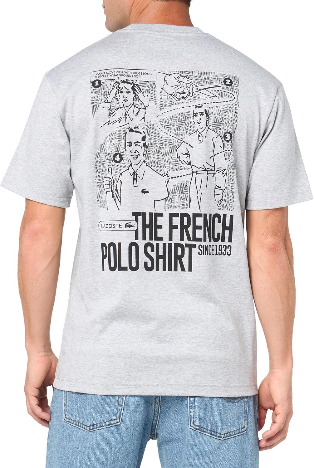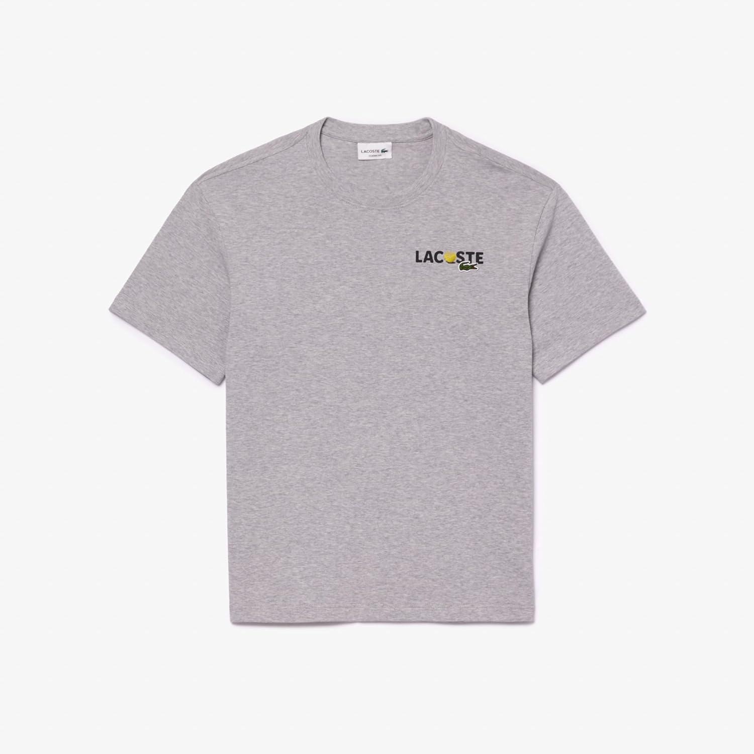 Lacoste Mens Crew Neck Short Sleeve Classic Fit Graphic T-Shirt(Grey Animated)