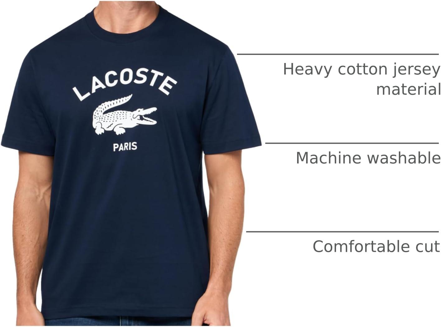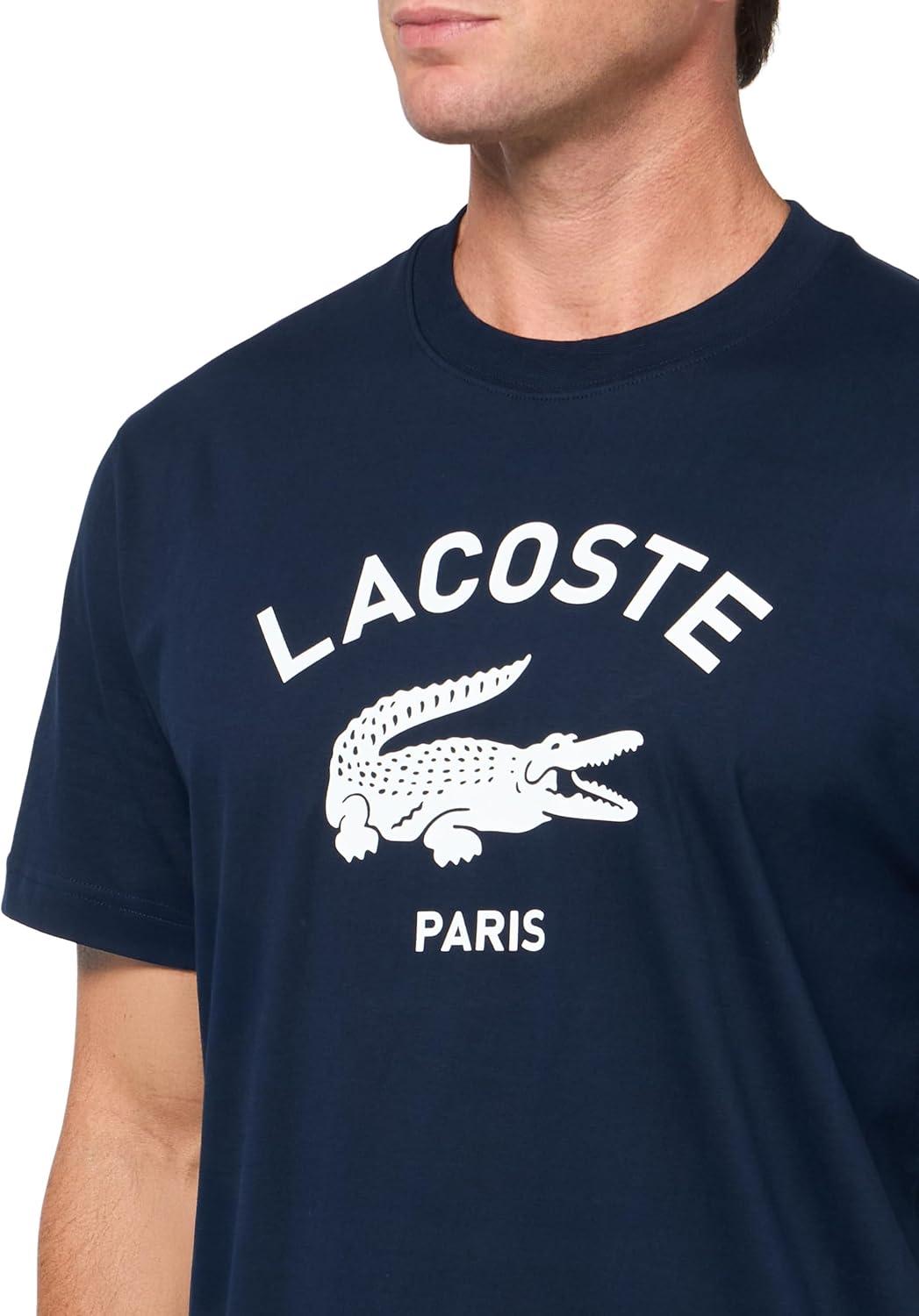 Lacoste Mens Crew Neck Short Sleeve Classic Fit Graphic T-Shirt(Navy Blue Branding)