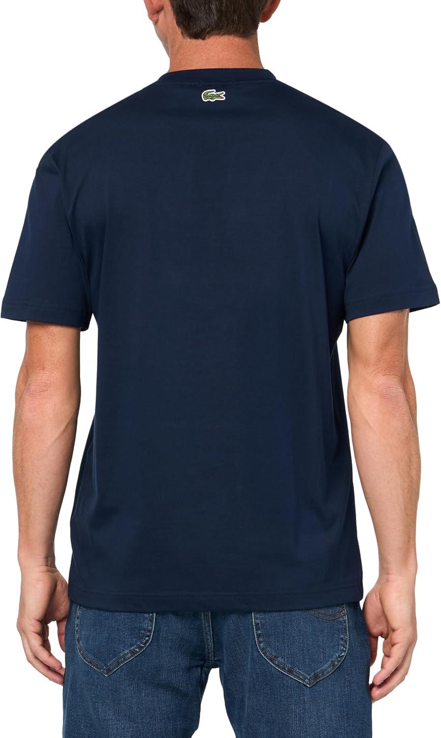 Lacoste Mens Crew Neck Short Sleeve Classic Fit Graphic T-Shirt(Rill Blue Branding)