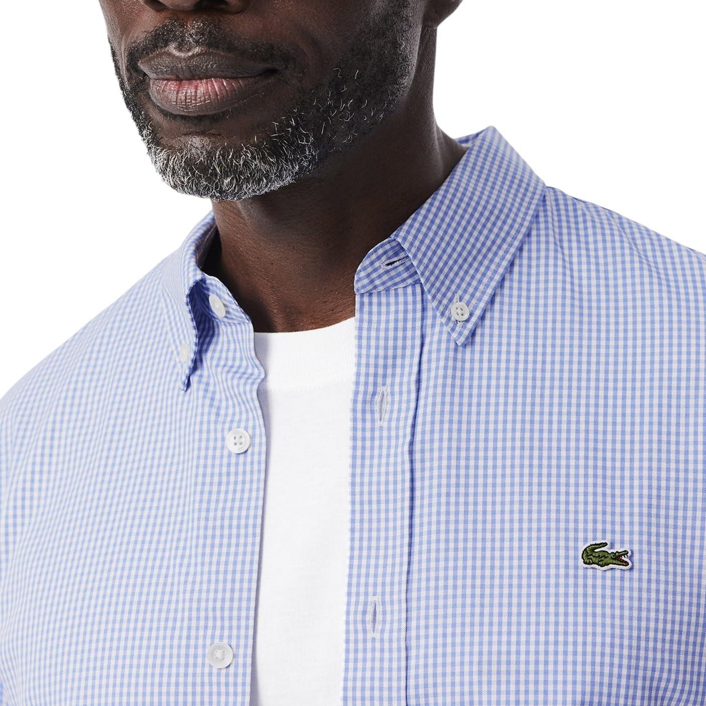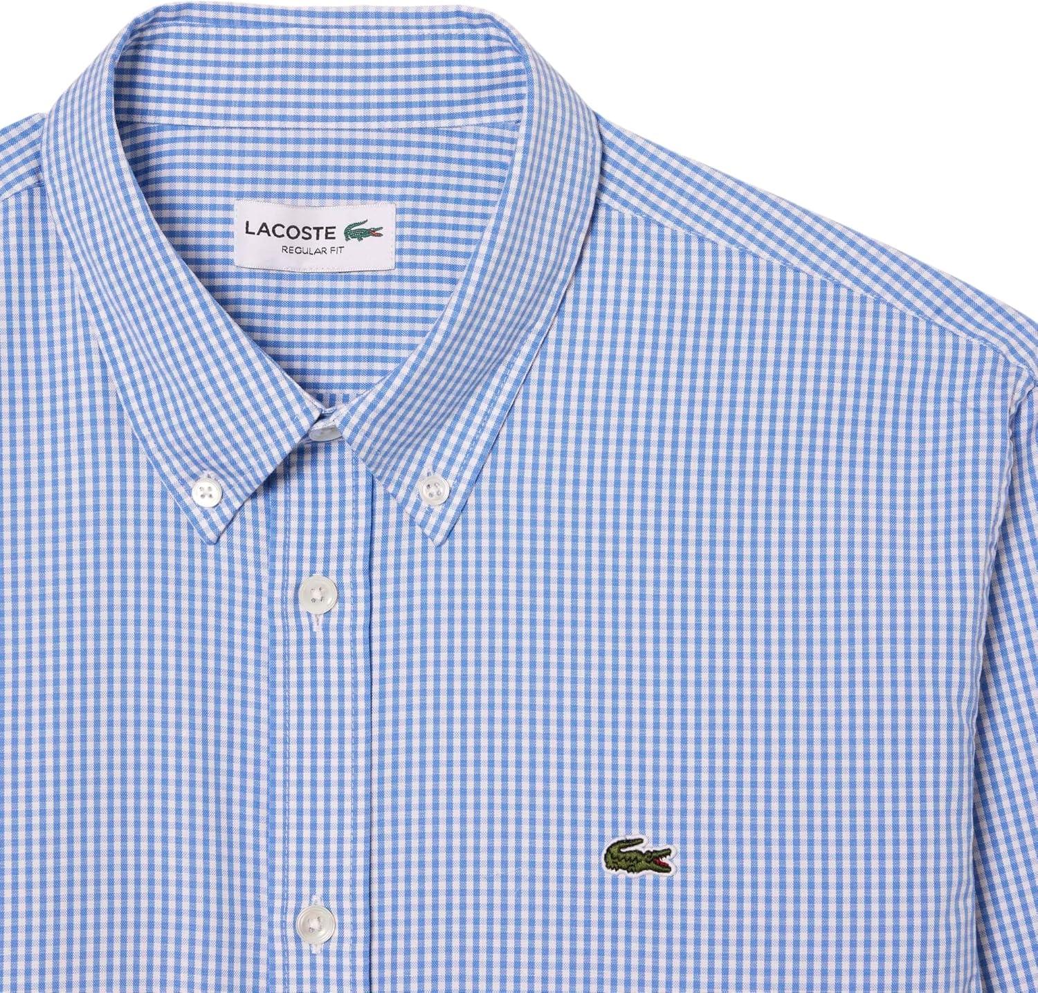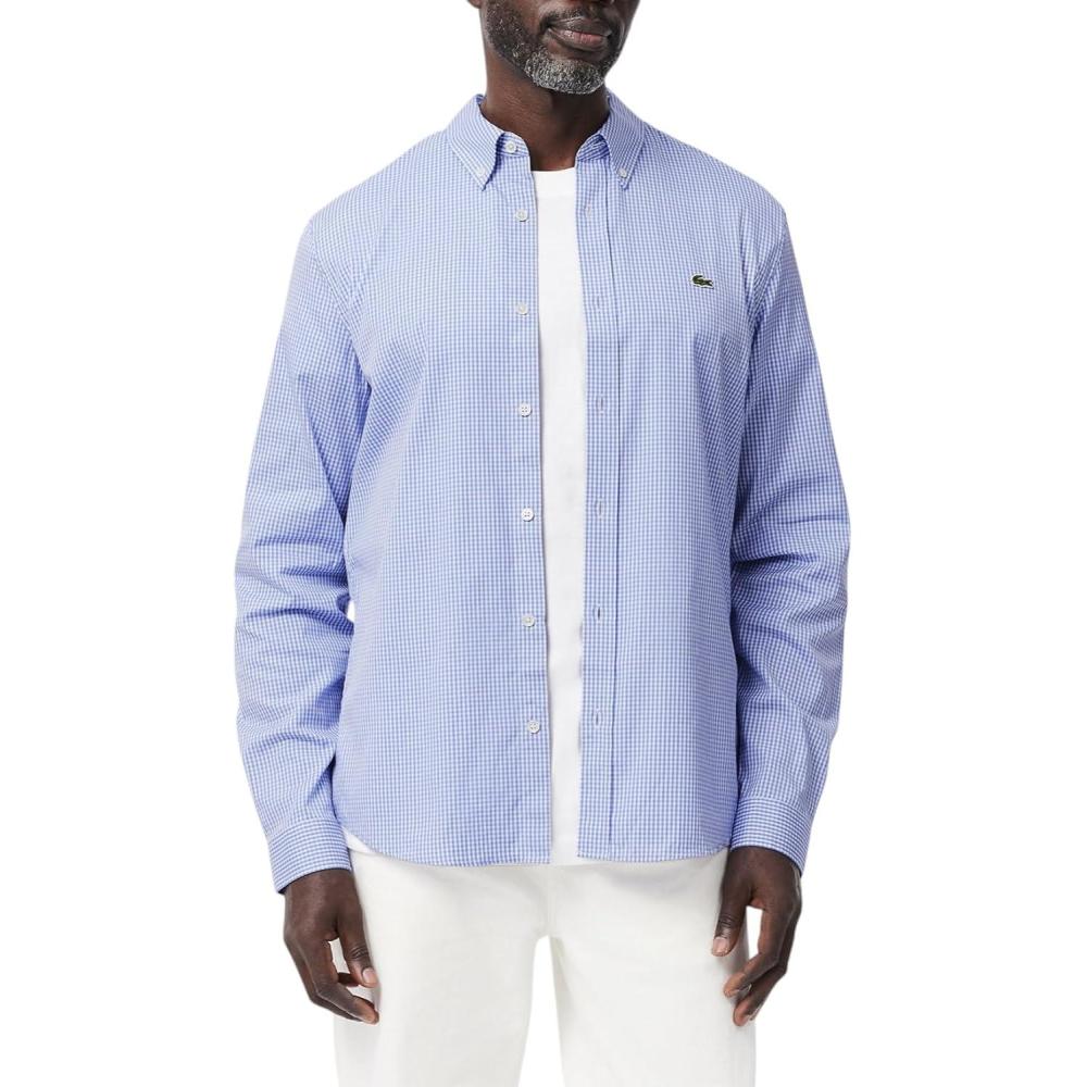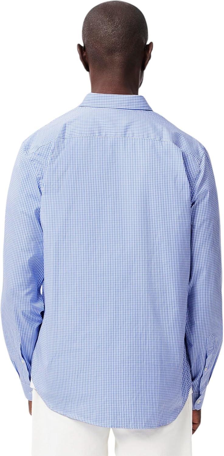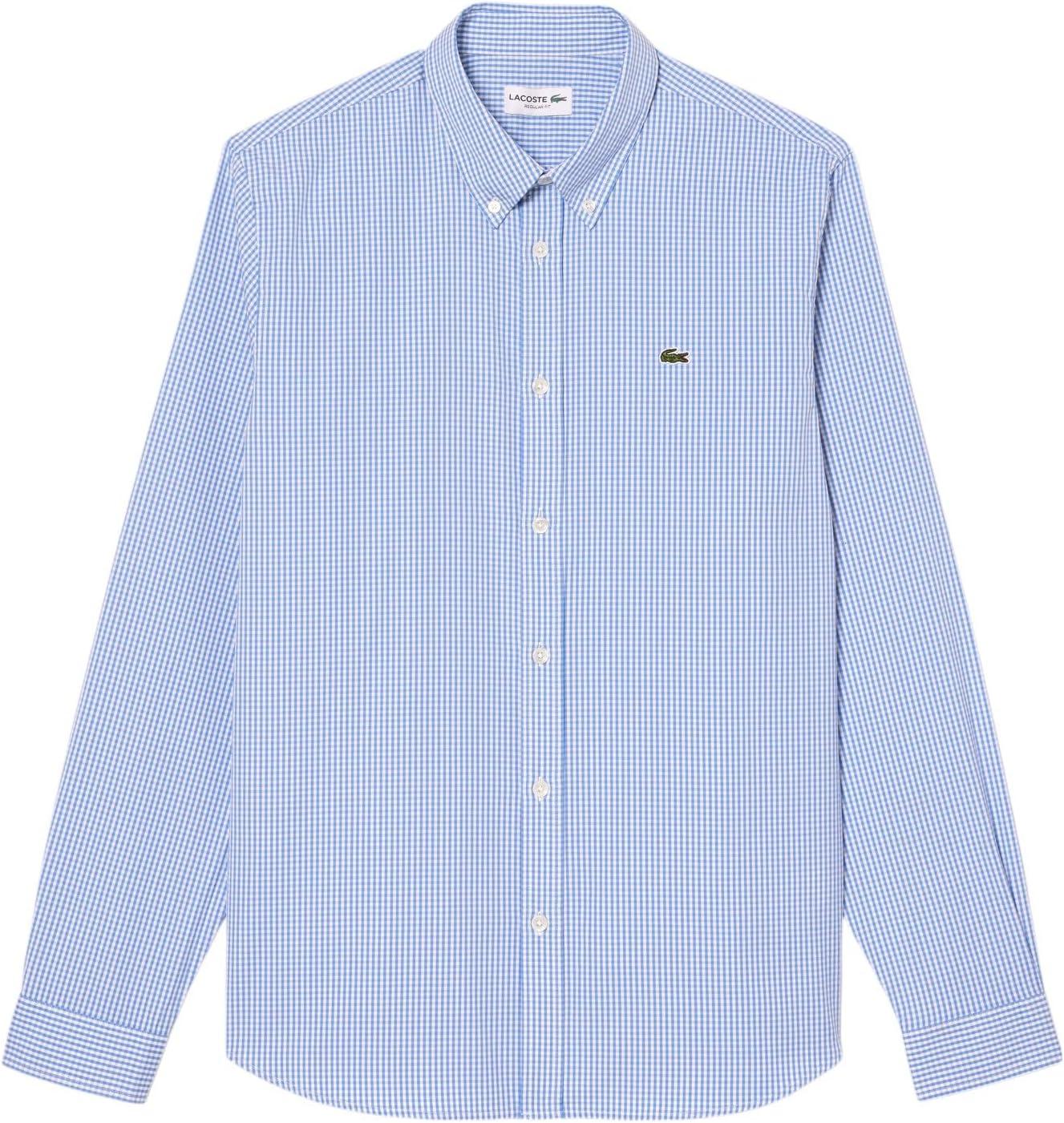 Lacoste Men’s Long Sleeve Checked Gingham Button-Down Shirt(Abysm Popeline)