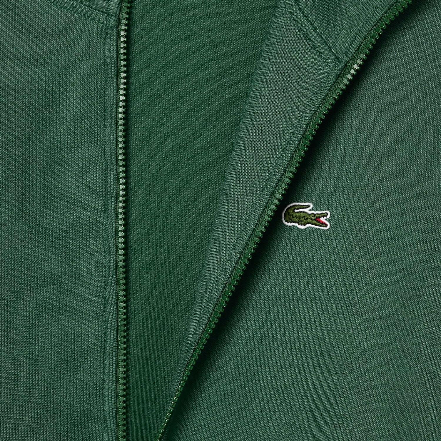 Lacoste Men’s Regular Fit Long Full Zip Collared Sweatshirt W/Single Stripe Sleeve Detailing Mm(Green)