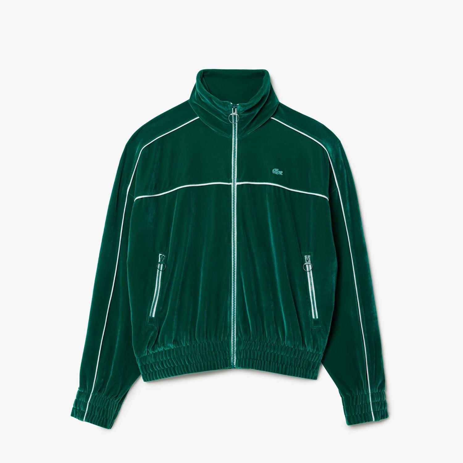 Lacoste womens Oversized Zipped Velvet Sweatshirt(Green/White)