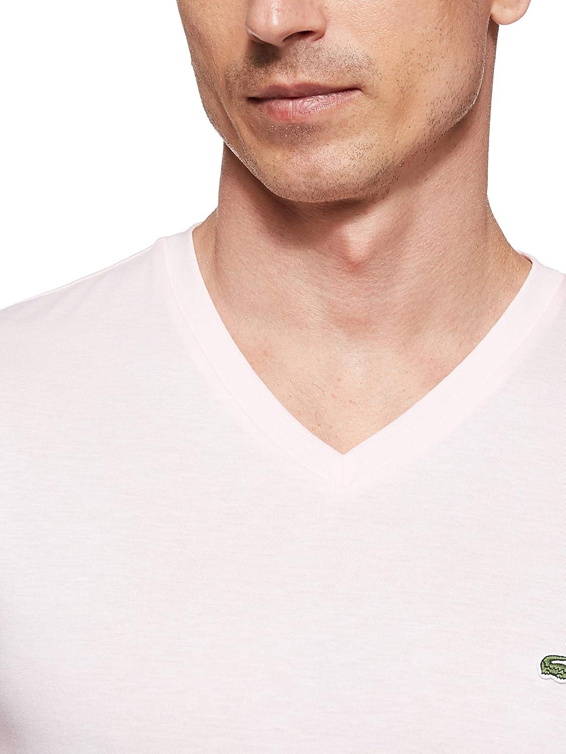 Yellow Pima Cotton V-Neck T-Shirt by Lacoste(Flamingo)
